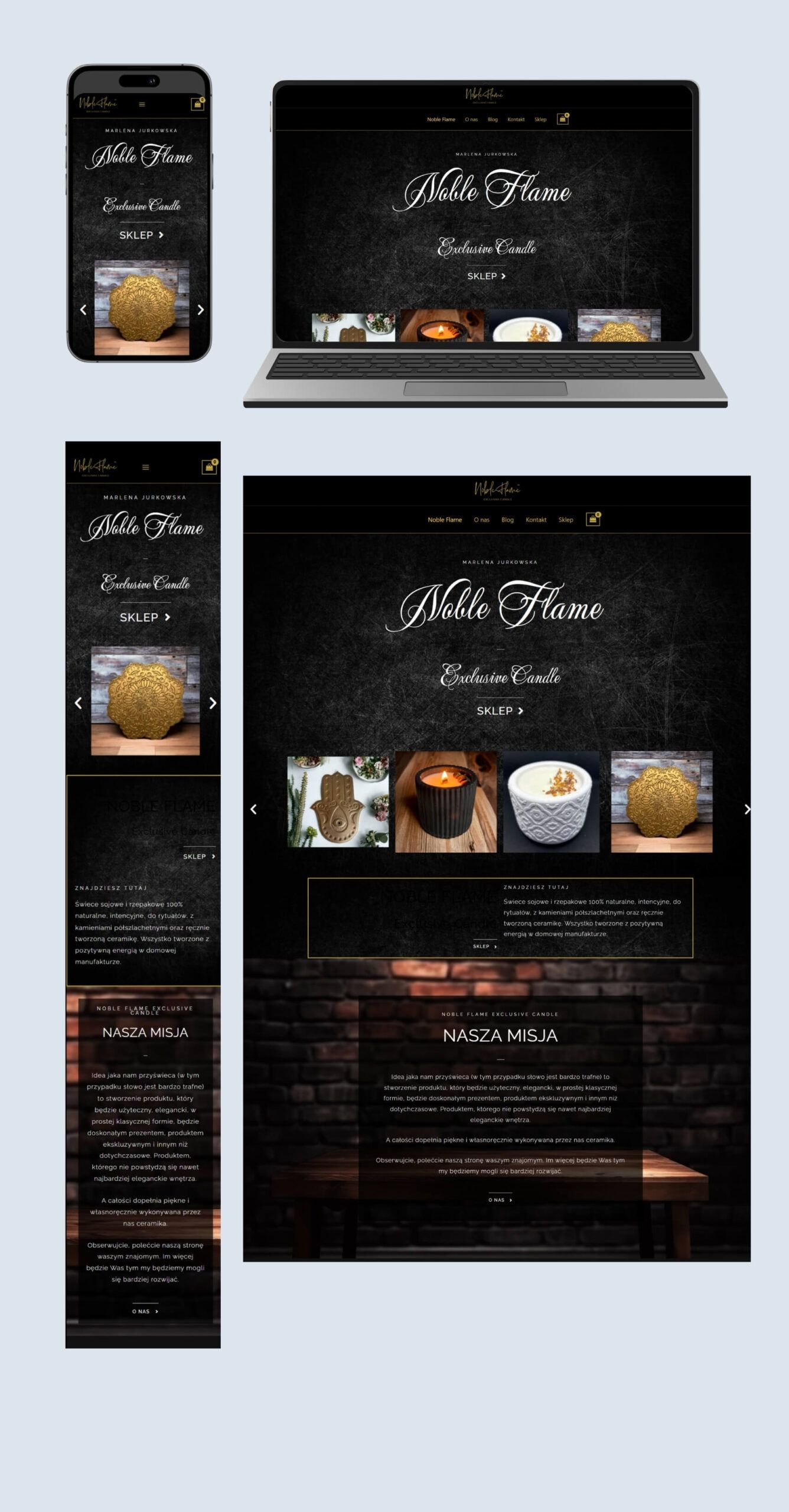 Marlena Jurkowska Noble Flame – projekt + realizacja strony i sklepu internetowego https://nobleflame.pl/