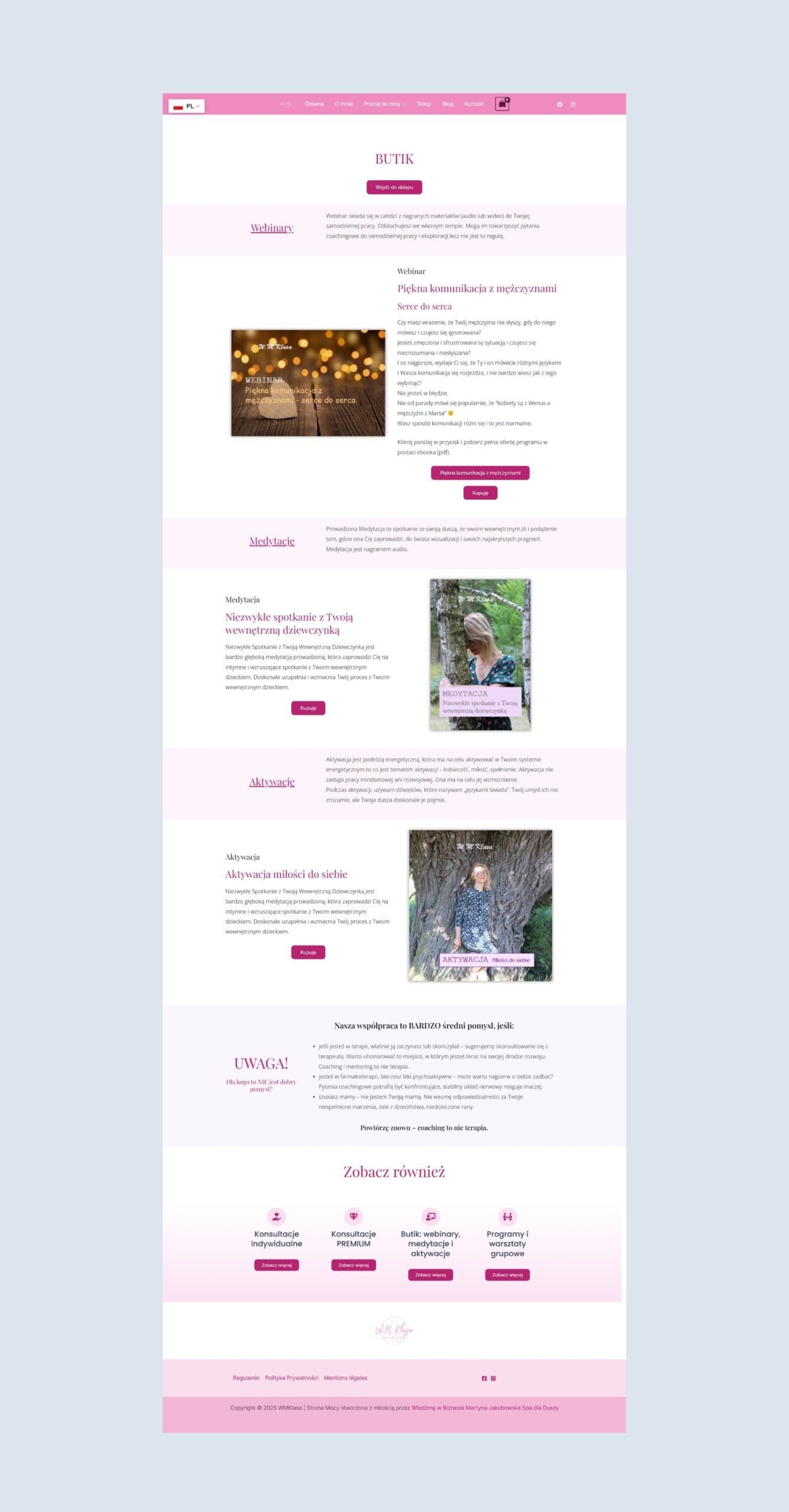 Wioletta Klasa Kreacja Spełnienia WM Klasa – projekt + realizacja strony i sklepu internetowego https://wmklasa.com/